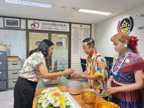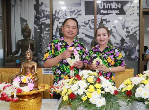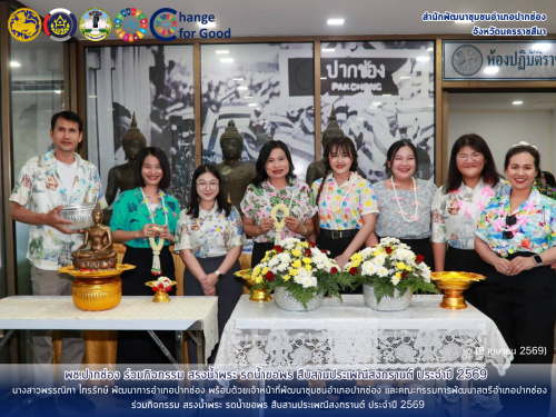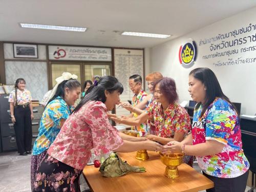 นางสาวพรรณิภา ไกรรักษ์ พัฒนาการอำเภอปากช่อง พร้อมด้วยเจ้าหน้าที่พัฒนาชุมชนอำเภอปากช่อง และคณะกรรมการพัฒนาสตรีอำเภอปากช่อง ร่วมกิจกรรม สรงน้ำพระ รดน้ำขอพร สืบสานประเพณีสงกรานต์ ประจำปี 2569